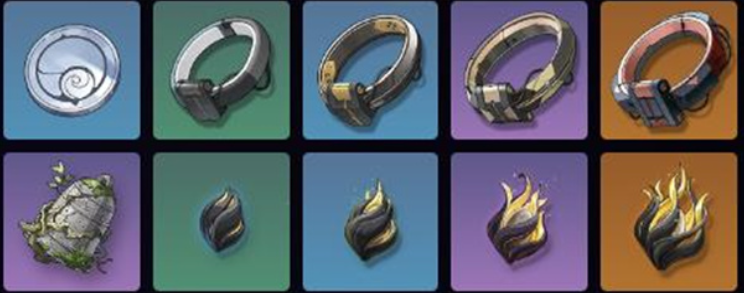 贝币、简陋镣环、基准镣环、改造镣环、特制镣环、碑趺古钟、声律种核、声律萌芽、声律新叶、声律花蕾