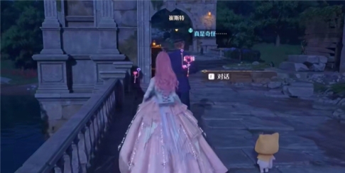 首先,与崔斯特进行对话,接受任务后,转身并朝远处的路灯方向走。如图所示,路灯和大桥的景色会出现在你的视野中。