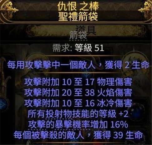 在流放之路2中,虽然毒气箭矢流派在昨日更新中被砍了60%的伤害,但其整体表现依然相当出色,无论是伤害还是生存能力都不俗。而且当前配置下还能撑到 144% 的物品稀有度,带来极高的收益。