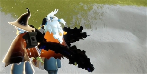 当你飞到小岛后,向左侧寻找台阶上的风铃修补匠先祖,与其完成互动,就能解锁相关物品。