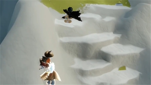 在台阶的位置,向右侧走,之后可以借助飞行,飞向云层中的下方小岛。