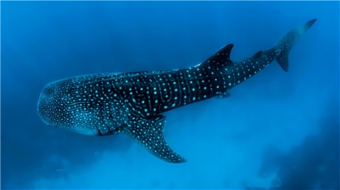 然而,鲸鲨尽管体形巨大,主要以过滤浮游生物为食,通常缓慢游动,一般不会像乌翅真鲨那样跃出水面。