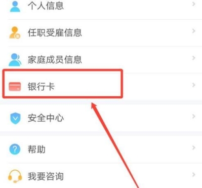 3、在“个人中心”页面中,我们点击如图位置的“银行卡”。