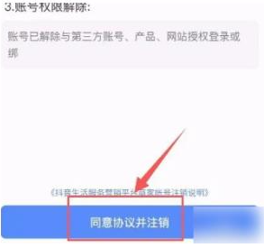 进入账号注销界面,选择“同意协议并注销”即可。如图: