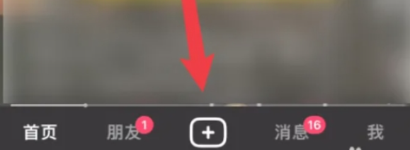在软件界面的下方,找到并点击“+”号按钮,进入视频拍摄或上传页面。