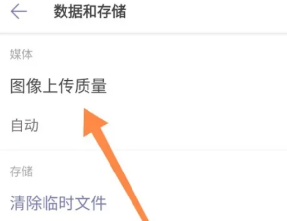 在“数据与存储”页面中,找到“图片上传质量”选项。点击该选项以查看当前设置和可用的选项。