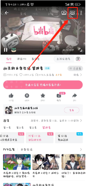 手机和电视或电视盒子同时连接在同一个WiFi下,打开手机端的哔哩哔哩App,选择你想看的视频,点击右上角的【TV】按钮。